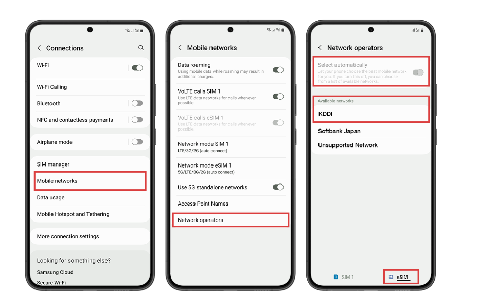 - Turn off Automatically select network and choose supported carriers.