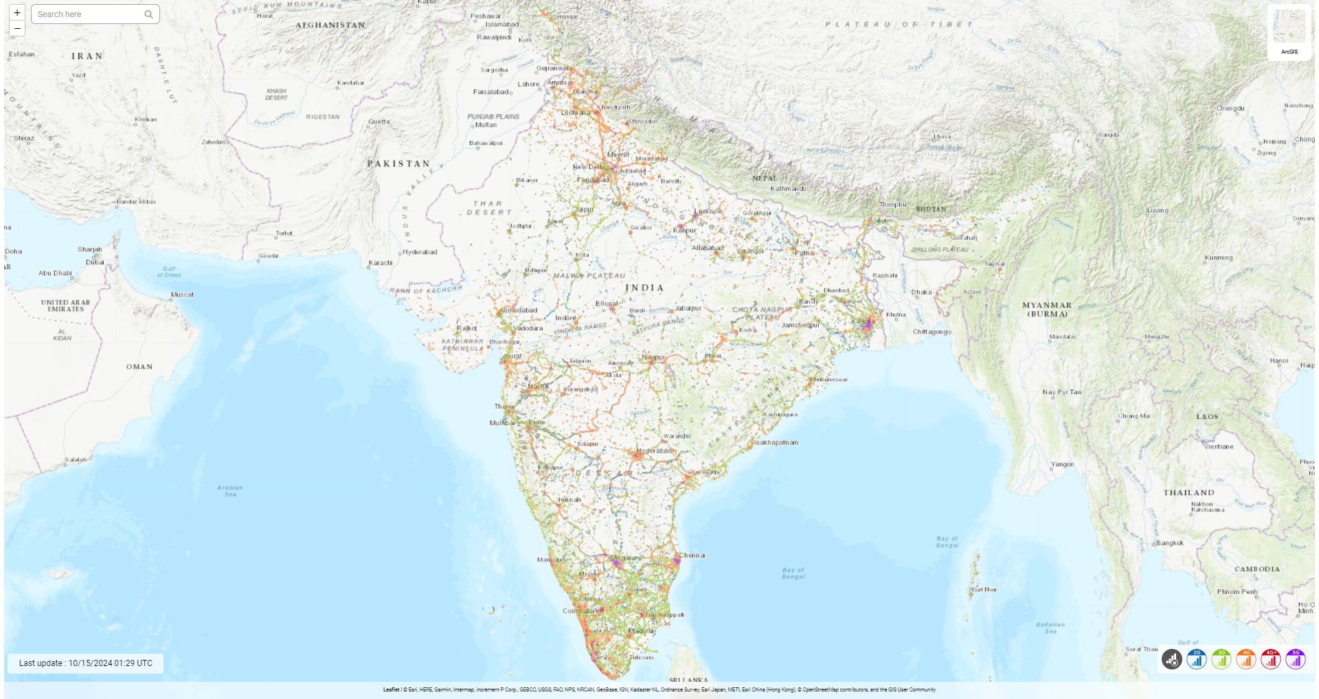 This map represents the coverage of Airtel 2G, 3G, 4G and 5G mobile network.