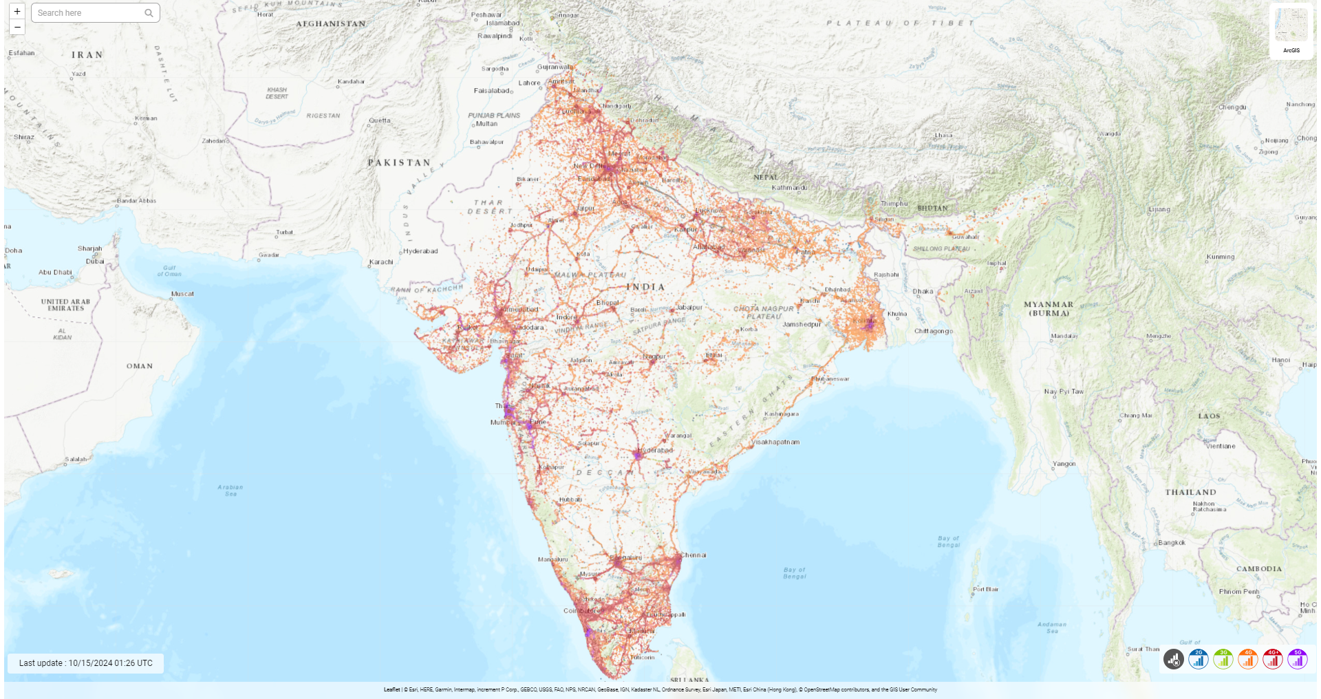 This map represents the coverage of JIO 2G, 3G, 4G and 5G mobile network.